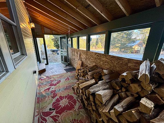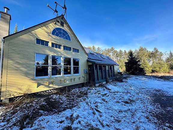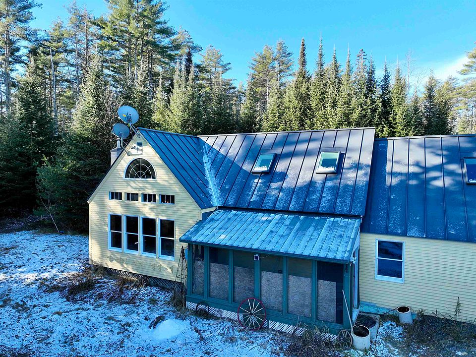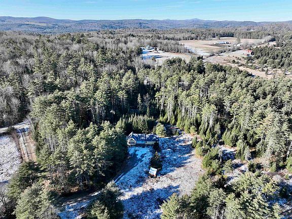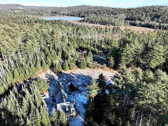 Tucked away from Perini Road by a private drive and surrounded by evergreen trees, this 1989 Cape with a 2016 addition has 16.6 acres of land, first floor bathroom, bedroom, and laundry facilities, as well as multiple comfort additions such as two Rinnai Direct Vent Heaters and an on-demand hot water heater. The entrance to the home is through a screened porch, currently used for wood storage but with potential to be outdoor-living space if desired. Upon entering the home, a large "mud-room" area with a closet greets you, and the home opens into differing sections to the left and right. The left side of the home has the laundry facilities, both bathrooms, as well as a large living space with a cathedral ceiling that boasts a bay window with benches that offer storage below adjacent to the kitchen. There is a wood stove insert in this portion of the home, and the kitchen has a loft above that can be used as additional recreation space or could be converted into a private office. The right side of the home steps down into a large living space with another wood stove insert, as well as the first floor bedroom branching from this living space. The upstairs portion has two carpeted bedrooms with skylights that beam natural sunlight into the space. The 16.6 acres runs east from Perini Road, almost abutting Harriman Pond off of Wallace Hill. Newbury is a quintessential Vermont town with rural elements, but all of your comforts within a short distance. Come see this special offering!