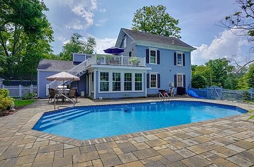 Park like setting surround this exquisite Victorian with walk-out bays, welcoming porch and fantastic stone patio inground pool conclave. Vintage but updated with hardwood floors, large young family room multi-windowed overlooking pool. The attractive cherry kitchen with Brazilian Cherry floors is graced with granite and has separate working butler's pantry. The elegant dining room flows into the living room with pillars separating the space. A convenient large first floor bedroom accessed the baths and the tranquil office. Travel up the curved staircase to the three other bedrooms with master having two closets and there is also a kitchen and back staircase as well as access to the dynamic large roof deck with composite flooring overlooking the pool and gazebo. The adjacent 783 sf rental home could easily be used for in-laws, rental income, or home business. It features a cathedral ceiling great room, bedroom, and bath and has propane gas heat. What a fabulous home !!!