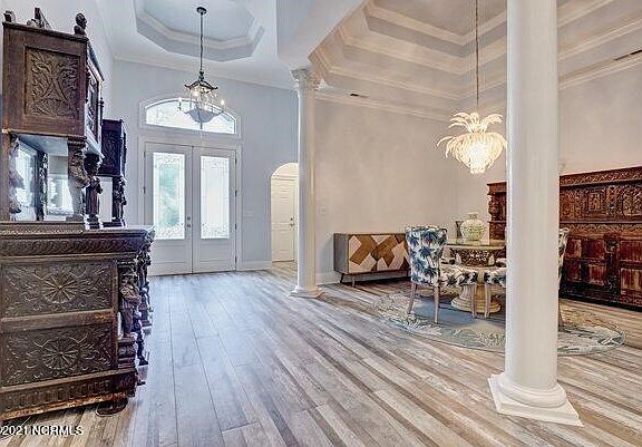 With high quality craftmanship and exquisite attention to detail, this custom built Mediterranean architectural design home in the beautiful exclusive gated community of River Landing welcomes you inside! The impressive foyer flows into the living area featuring tray ceilings, beautiful molding throughout, high arched openings, cast stone fireplace and many extras. This one-of-a-kind home has an open floor plan living area with beautiful views of the backyard from the eight-foot sliding doors off the main living area leading to a spacious covered screened lanai, perfect for outdoor living. Gourmet kitchen with an expansive center island with quartz countertops and breakfast room which open to the large great room makes it ideal for entertaining. Master bath with double sink quartz vanity has a garden tub and oversized walk-in shower. His and her walk-in closets off master bedroom. The well-designed laundry room has built in cabinets and is off the master bath. Large three car garage is a huge plus. This unique Floridian style home is a must see!