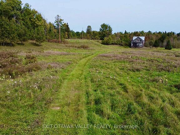 Welcome to 191 acres of countryside in the heart of Renfrew County, just minutes from the vibrant village of Killaloe. This expansive and scenic property offers a rare opportunity to own a diverse landscape of rolling terrain, blending open pasture, mature woodlands, and natural wetlands (approximately 10-25% coverage). Whether you are seeking a recreational retreat, private homestead, or a long-term investment in land, this property offers endless potential.The rolling topography provides stunning views in every direction and creates natural privacy and seclusion. Ideal for nature lovers, hunters, or those seeking to live off the land, the mix of open fields and treed areas offers space for pasturing animals, establishing gardens, or building your dream home tucked away in the trees. The presence of wetlands supports a rich ecosystem with abundant wildlife including deer, wild turkeys, and waterfowl.Located on the outskirts of Killaloe, this property provides the best of both worlds peaceful rural living with easy access to amenities including shops, restaurants, schools, and lakes. The area is known for its natural beauty, outdoor recreation, and strong sense of community.Zoned Rural, with potential for various uses including hobby farming, forestry, and residential development (buyer to verify with township). Hydro is nearby. Road access is available, and portions of the land are accessible by trail. Whether you're looking to build, explore, farm, or simply escape the city, this property delivers the space, beauty, and versatility to make it your own.Don't miss your chance to own a piece of Eastern Ontarios natural heritage. Hydro is on the property up to old homestead residence.Book your walk of the land today and experience the potential this beautiful acreage has to offer! Do not enter the building it is unsafe , caution tape is up do not cross. Must be in attendance with a realtor and have booked time to view property. Seller willing to do a VTB