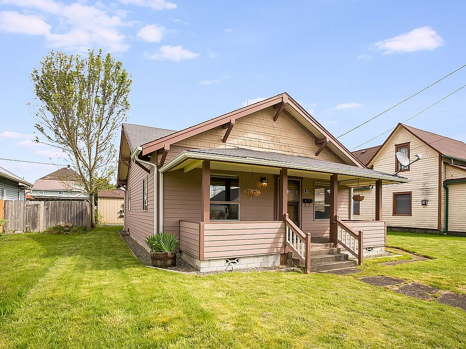 Charming 2 bed 1 bath home with open concept! New engineered hardwood floors and fresh paint! Covered porch AND patio perfect for relaxing! New water heater and new windows! 12X16 partially insulated(all but the roof) shop in the back. 2 parking spots off the alley. Large laundry/mud room. All appliances stay, along with window A/C unit!