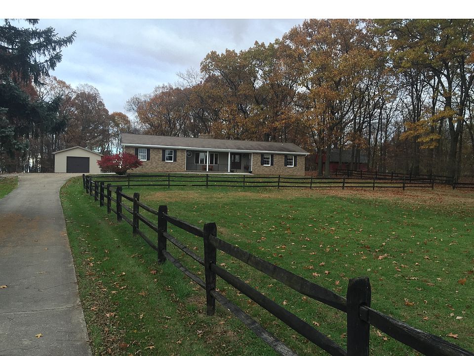 Open house is actually Sunday, April 15 1:00 pm to 3:00 pm. 3BR, 2Bath, all brick ranch on 5+ beautiful acres. Newer kitchen and baths, flooring, lighting, exterior/interior doors, heat pump and whole house Air Conditioner. Master bedroom has 1 full bath and walk in closet. Family/sun room, 2 fireplaces, full basement with 2 sets of interior stairs for privacy or mother in law suite, laundry on first floor, 2 story horse barn. 2&1/2 stall attached garage, 1 stall detached garage, cement paved driveway. Pantry and lots of closet room, attic access. Move in ready. Having difficulty uploading photos, please text me and I will send. Will upload to this website when possible.