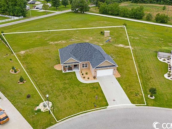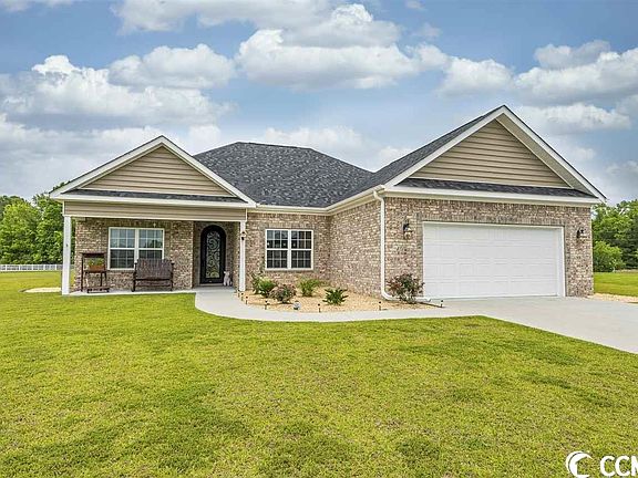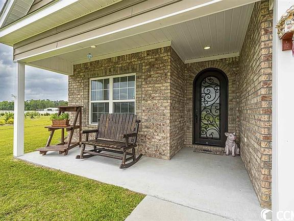 Experience the beauty of this four-bedroom, two-bathroom home with a covered lanai and open-air patio located near the peaceful Waccamaw River. It is just a quick nine-minute drive to the historic, waterfront downtown Conway and less than 35 minutes away from the stunning beaches of the Atlantic Ocean. Built in 2016, this home is situated on a spacious .74-acre lot, providing ample space for a pool, garden, shed/workshop, or boat/RV parking. This unique community of 82 homes has no HOA; all lot sizes are half an acre or more. The interior showcases wide-plank porcelain wood tile and smooth ceilings throughout. The split bedroom floor plan includes a flex room that could easily serve as a fourth bedroom, study, or formal dining room. The kitchen is open to the main living area and features a center work island, granite countertops, tile backsplash, custom soft-close cabinetry, stainless steel appliances, and a pantry closet. From the living room, dining room, and kitchen, you can enjoy the breathtaking views of a live oak tree that is hundreds of years old. The master bedroom features a double tray ceiling with crown molding, a ceiling fan, porcelain wood tile, and a walk-in closet. The master bathroom boasts a double vanity with custom granite and soft-close cabinetry, a water closet, and a linen closet. The extended garage has pull-down stairs with floored attic storage, workbenches, a utility sink, and a side garage door for easy access to the yard. Homes of this caliber in such a lovely neighborhood with no HOA do not come on the market often. Schedule your private tour today.