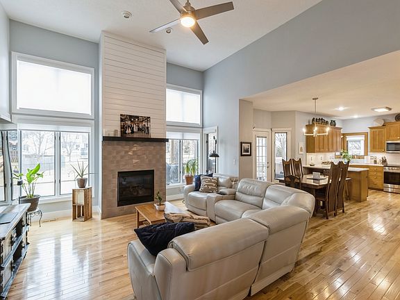 Stellar 1.5 story 1 owner home! Meticulously cared for. Main floor offers primary bedroom with 3/4 bath and W/I closet, large office, hickory floors though-out main. Living room with vaulted ceilings, fireplace with shiplap and tile and a wall of beautiful windows! Beautiful kitchen offers quartz countertops, backsplash, custom cabinets, under cabinet lighting, newer stove-induction/air-fryer/dehydrator. Main floors main doors are approximately 36 wide. Mud room for convenient dropping zone. Upstairs you will find 3 bedrooms, a bonus room, and a full bath which has been freshly painted. Enjoy time in the freshly painted lower level where you will find 2nd living room, a built-in wet bar, and many great built ins to display your treasures-beautiful custom made! Bedroom with murphy bed and 3/4 bath. Enjoy relaxing time on the covered deck while watching a game of basketball on the court in the backyard. Fully fenced yard and irrigation! All kitchen appliances including washer/dryer will stay with home. Cabinets in home were handmade by the owner-they are Quartersawn wood-stain glass panel in cabinetry above desk also made by owner. Truly so much pride in this well loved home and so many great updates!