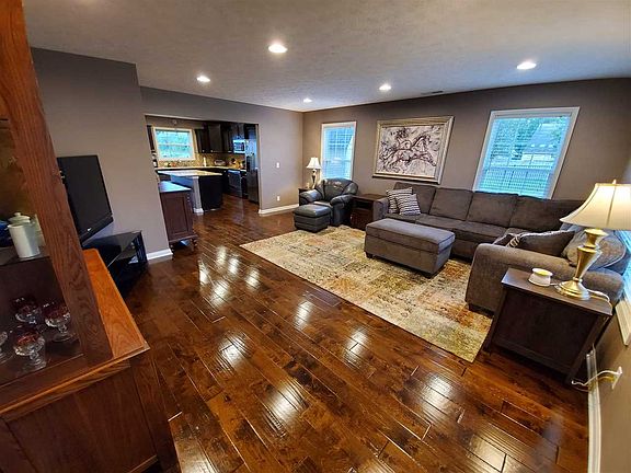 Welcome to this lakefront 4 bedroom home on a Northside cul-de-sac that is loaded with updates. Upon entering, the open floor plan has a great flow with hand scraped hardwood floors throughout. The living room flows nicely to your dream kitchen. Granite counter-tops, an abundance of Aristocraft cabinets, kitchen island with seating, tile backsplash and stainless steel appliances are just a few of the features this kitchen offers. The kitchen is open to the dining area that leads to the family room. Plenty of room and a beautiful stone gas fireplace set this room apart in addition to the lake view...what a place to relax and entertain! Half bath and mudroom area complete the main level. Upstairs the master suite is enormous and sure to please. The gorgeous master bath has a double vanity, separate tile shower and large walk-in closet. The upstairs bonus room is a great office area, additional family room or play room. Three additional bedrooms, full bath and laundry room complete the upstairs. Outside, enjoy the beautiful covered patio with unbelievable lake views, additional uncovered patio space as well as the new fenced yard. The lot is a nice size and offers views, privacy and access directly to the lake. The sellers are offering a home warranty for additional peace of mind.