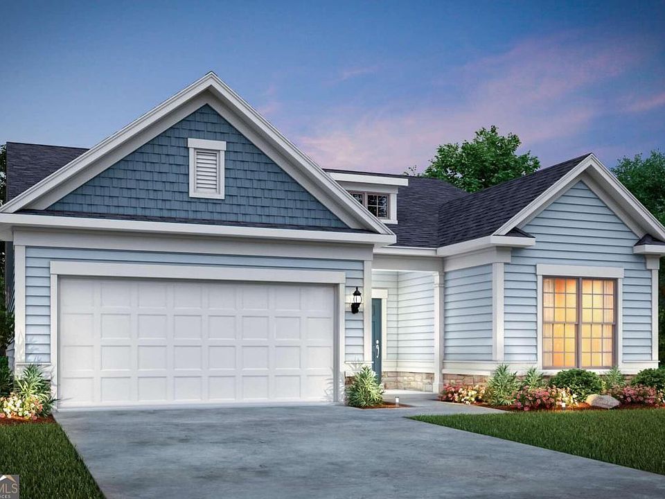 Final opportunities remain in the beautiful 55+ new construction community, Wimberly. This popular 2 bed/2 bath Abbeyville floor plan provides an open concept and spacious feel. Inside you will find beautiful, upgraded hardwoods, a timeless white gourmet kitchen with a large kitchen island with views of the gathering room and cozy fireplace. The Owner's bath provides a true spa-like retreat with a large step-less shower. Located upstairs is a finished loft that is perfect for extra storage space or a place for the grandkids to play! Wimberly is perfectly located near hospitals, shopping, dining, & recreation in Cobb County- with attractive senior tax exemptions! Low maintenance living that includes lawncare and weekly trash for only $160/month. Enjoy games and entertainment in the clubhouse, conversation by the community fire pit, or nice strolls around the community!