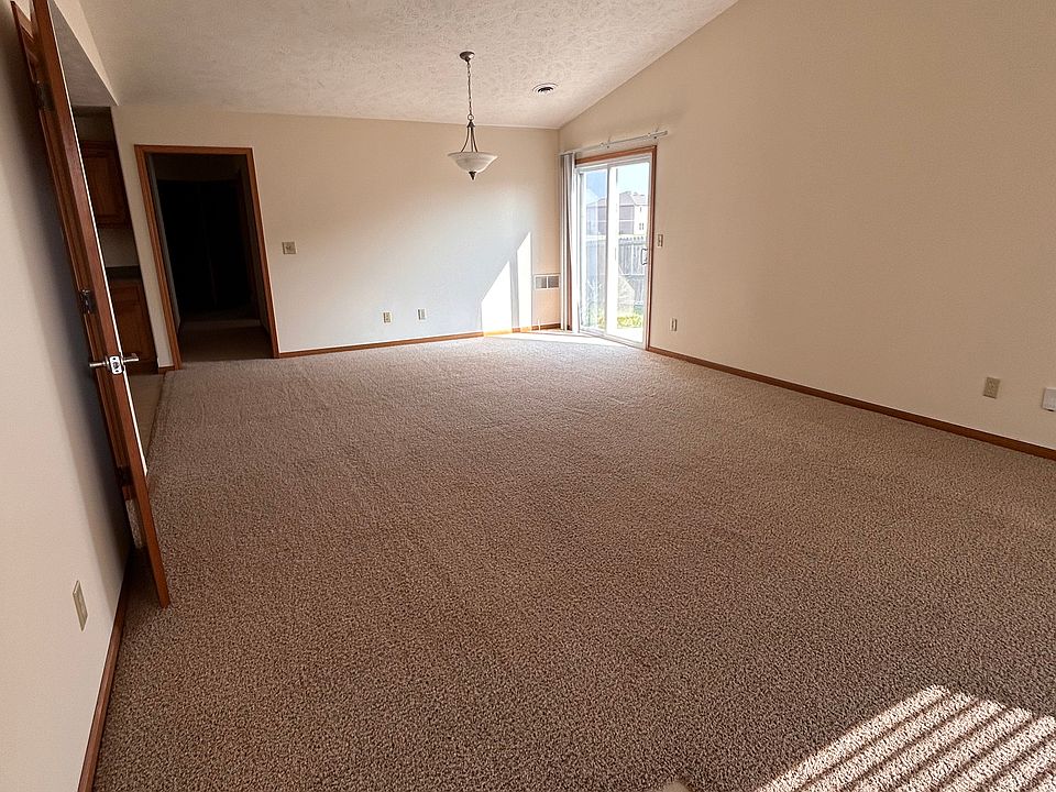 This is a well-maintained 3 bedroom 2 bath duplex in a great neighborhood backed up to a stocked pond. Huge open kitchen with island and all appliances, washer/dryer hookups, patio, vaulted ceiling in living room and master bdrm, double sink vanities in master bath, one car garage. Very nice home! Tenants are responsible for all utilities and lawn care.