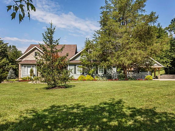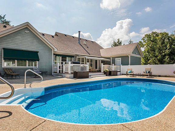The perfect amount of country living w/ a secluded in-ground pool! This 4 bedroom, 3.5 bath ranch includes a finished walkout basement, pool house and sits on 3.2 acres w/ a wooded backdrop. This beautiful home is full of detail! The open floor plan shows off the family room w/ stoned fireplace, sun room, dining room, eat in kitchen and hardwood floors. The kitchen has granite counter tops and gas stove/range. The master suite is a homeowners dream w/ completely renovated bathroom w/ TWO walk-in closets that are HUGE! The finished walkout basement is very spacious and has a family room, kitchenette, Office, study, and full bath. Added features: Home has electric w/ gas backup, hard line gas grill and new pool liner, whole house generator. Garden shed, mower storage, plus a two car carport!