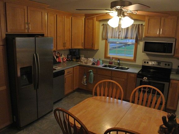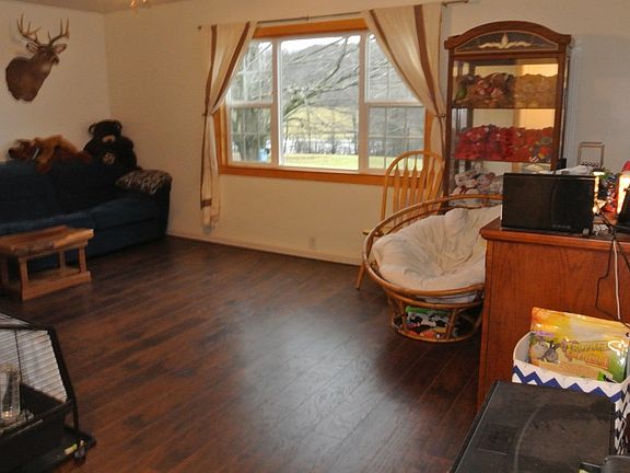 Nicely redone ranch ready to move in! New windows throughout, vinyl siding, Amish made kitchen with solid surface counter tops and black stainless appliances, updated bath, and new electric panel. Over sized 3 car+ barn/garage with electric and concrete floor All situated on an acre+/- with some moderate views of the hills. Don't miss this one!