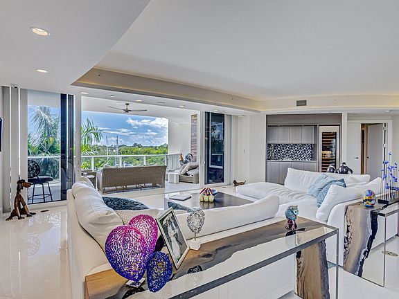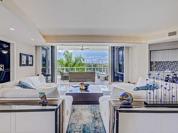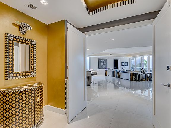 SPECTACULAR! Enjoy long marina views in this expansive 4th floor residence!Only the finest full concierge services just moments to the ocean. Indulge in your private keyed elevator to an open floor plan with bright 10-foot ceilings and an abundance of panoramic views from nearly every room. Beautiful 4 /4.5 + Custom 1920's art deco movie theater. Completely voice activated smart home, all en-suite bedrooms, great room, separate dining, porcelain floors, quartz counters & electric shades. Luxury living private wrap around terrace with marina which allows boats up to 120 ft. 24/7 manned gate/security, concierge. Two state of the art fitness centers, 2 pools/ cabanas, private wine cellar, club rooms, golf simulator & putting green, and climate-controlled parking under the building.