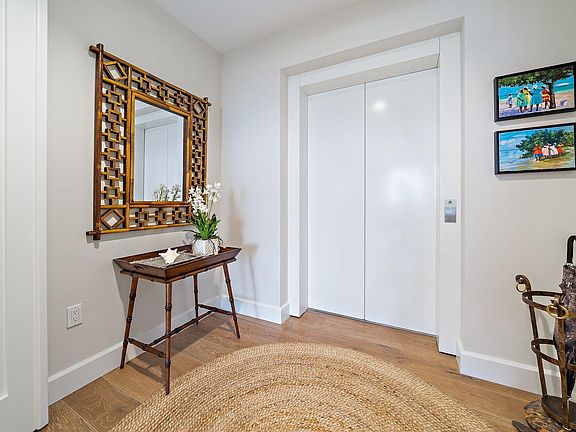 Exquisite opportunity to own a 5th (top) floor residence in Palm Beach Garden's newest luxury condo, Azure. Enjoy Ocean breezes + panoramic VIEWS from this end unit that lives like a single family home. A private elevator opens to this 3000+ sq. ft Impeccable bright + airy home w/ 800 SF of wraparound lanai! Grand floor plan offers 3 bedrooms w/ ensuite baths plus a spacious den/office and cozy dining nook by kitchen. Designed for Florida living with a neutral color palette and coastal ambiance, this home offers the finest in modern design elements including hardwood floors, custom kitchen w/ silastone counters + Thermador appliance suite. Spacious master bedroom is private w/ Huge closet + luxe spa bath w/ stone shower. Residents of Azure enjoy private walking trails, 2 pools + modern