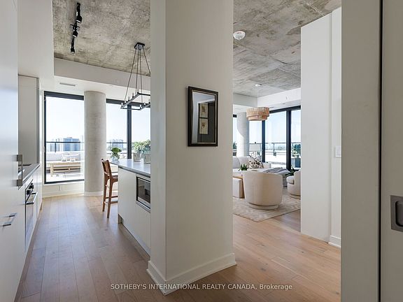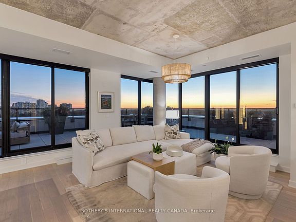 Welcome to The Eclectic Junction House Condos where urban style meets effortless living! This modern, spacious open-concept 3-bedroom penthouse suite is perched on the ninth floor of a boutique low-rise in the heart of the coveted Junction community. Designed for both comfort and sophistication, the home features a primary suite with a wall of custom closets, built-in shelving in all additional closets, and a living room with floor-to-ceiling built-in cabinetry enhanced by mood lighting. Storage throughout the unit is truly unparalleled.Enjoy elegant finishes like sleek hardwood flooring, built-in appliances, a large spa-inspired bathroom, and floor-to-ceiling windows. The expansive wrap-around balcony offers sweeping, unobstructed views of both the city and Lake Ontario perfect for entertaining or relaxing above it all.This residence comes with a prime parking spot equipped with an EV charger for utmost convenience. Residents have access to remarkable amenities, including a health and wellness gym, co-working space, and a rooftop terrace with BBQs, loungers, fire pit, dog area, and panoramic city and lake views. Concierge service and secure parcel storage make day-to-day living effortless.With a Walk Score of 97, you're mere steps from trendy cafes, top restaurants, markets, boutiques, schools, parks, bike paths, and public transit including the UP Express.