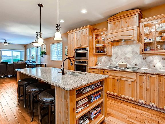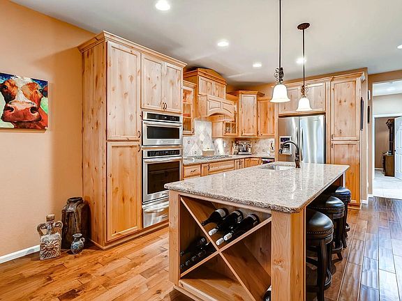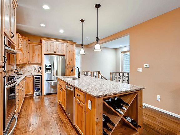 This beautiful Vista Ridge home is located on the 10th green at Colorado National w/unobstructed views of Long's Peak and Front Range. Custom knotty alder cabinetry and upgraded counters throughout, custom fireplace mantel, oversized framed bathroom mirrors, custom downstairs bar & new cabinet hardware. The oversized master retreat features a sitting area, large picture window, sliding door to deck, custom closet drawers, shelving & dual inlay sinks in the master bath. The chef's kitchen includes quartz counters, wine rack end cap, book case end cap, 2 slide out spice drawers, custom glass cabinets w/accent lights, convection oven & microwave, warming drawer, 5 burner gas cook-top, wine fridge, lazy Susan & dual pantries. Other features throughout include Hunter Douglas blinds, custom wrought iron railing, composite front/rear decks, finished garage, wired surround downstairs, bonus space and storage downstairs. Too many upgrades to list - come and see for yourself. Don't miss it!