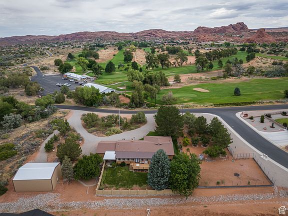 A truly rare opportunity to own one of Moab's most desirable residential properties-1.53 acres directly adjacent to the Moab Golf Course. Featuring a 3,379 sq. ft. custom-built home with an attached 2-car garage and additional shop space, offered for sale by the original owner/builder for the very first time. The home reflects the quality construction of its era and has been exceptionally well cared for, with thoughtful design elements including multiple living spaces, fireplaces, expansive decks and patios, mature landscaping, and fruit trees. While some finishes remain in their original style, the solid craftsmanship provides the perfect canvas for updating to your personal taste. Set on a large parcel with sweeping views of the red rock, and La Sal Mountains, this property combines privacy, space, and immediate access to Moab's golf and recreation lifestyle. Whether as a primary residence, second home, or legacy estate, this is an unparalleled chance to secure a premium location that rarely comes to market.