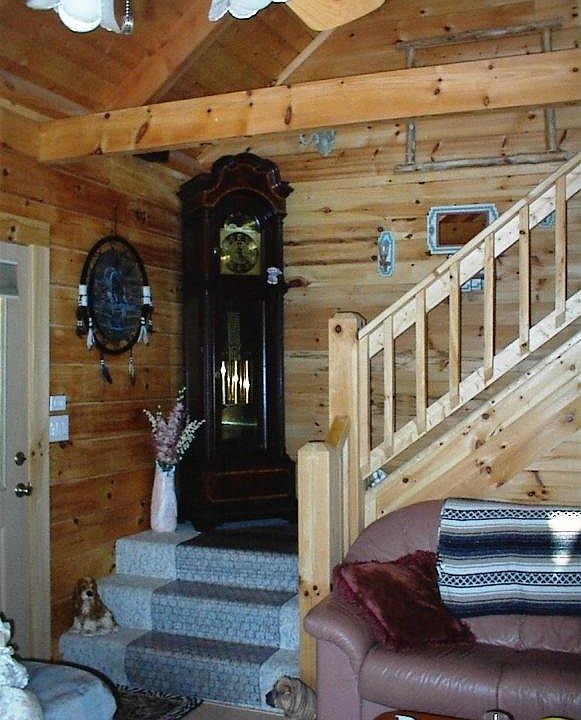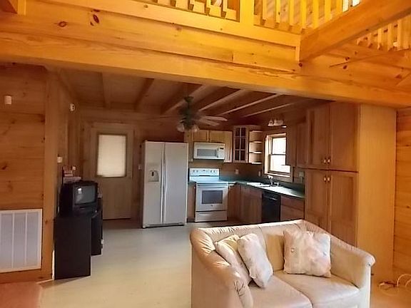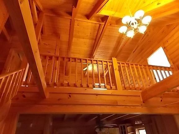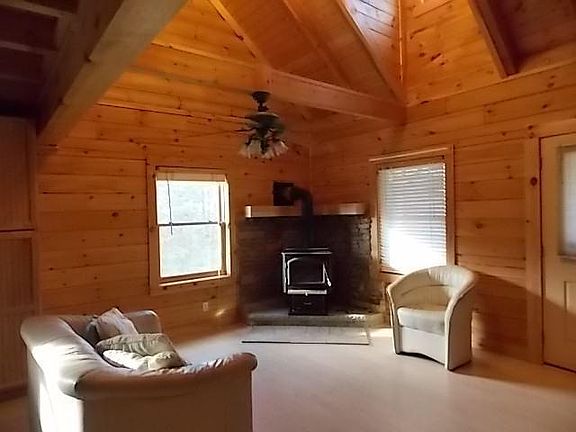 All inspections/repairs done ready to go.Peace and quiet, a beautiful log get away built by ''Honest Abe'', on 15.5 secluded acres with a pond and creek. 2 bed 2 1/2 bath residence,jetted jacuzzi in upper bathroom,Maple floors,knotty pine interior. 2 car 28x28 garage with 400 amp service, joined by breeze/way to house, plus a 24x40 ft barn/garage, a well in 10x10 shed. House, garage and barn have alarm systems.In front of house a 75ft waterfall flows into a fish pond. Relax in Gazebo spa tub.
