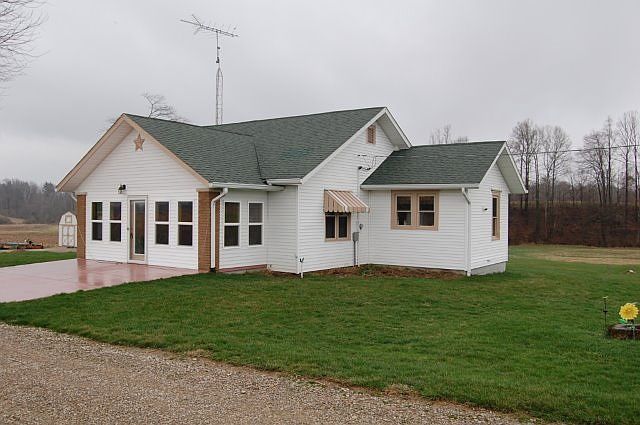 2 bedroom, 1 bath, home that has lots of updates over the past 5 years which include: roof, windows, furnace and a/c, some flooring and paint. The basement is unfinished but painted and insulated with laundry area and sink, plus storage room and utility area. The 24x32 garage is also new with stairs to go to the upper level storage area. This property sits back a long private lane with farm fields all around and a very nice setting.
