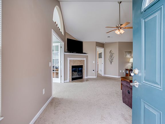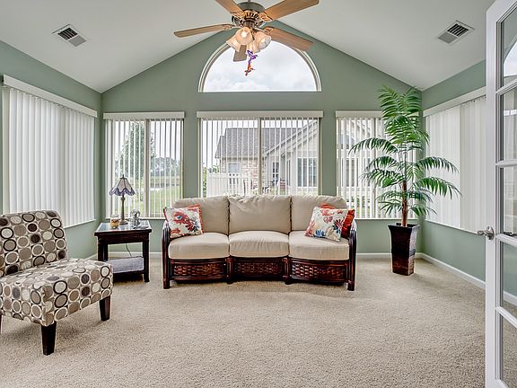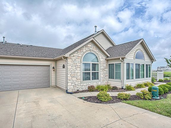 Abbey floor plan. Lake views. 2 bedrooms 2 baths. Only one owner, ready to move into. Cathedral ceilings, ceramic tile, nice a bright with plenty of windows.Large eat-in kitchen has stainless appliances. Large living room with gas fireplace and open dining room. A large sun room has double French doors that open into the living room, great for entertaining. The master bedroom has a private master bath and walk-in closet. The master bath has a spa tub with aqua jets. Two car garage has attic storage w/pull down stairs. Monthly fee covers exterior maintenance, snow removal, lawn care, master insurance policy. Clubhouse, pool and fitness room included. Don't miss the virtual tour and floor plan.