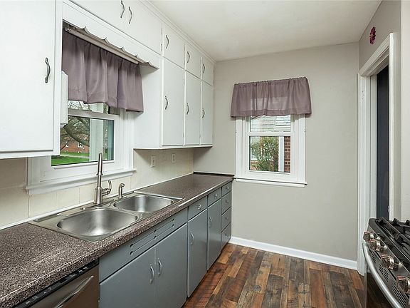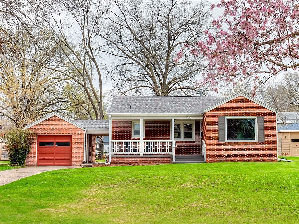 Brick ranch in walking distance of Grandview Golf Course. Relax out of the covered front porch and enjoy the family friendly neighborhood. Main level has a living room, dining area, 2 bedrooms, a full bath and kitchen. Lower level is unfinished and a perfect space for storage. The one car attached garage is a great place to keep your vehicle safe from the elements. Relax in the quiet shady fenced-in backyard and watch the kids & pets run and play. Updates include newer main level flooring and most windows. This lovely home is close proximity of all you daily amenities, Teachout Aquatic Center, the East Side Library and Goodrell Middle School. You also have easy access to I-235, I-35 and I-80. Schedule a showing today and this could be your next home sweet home!