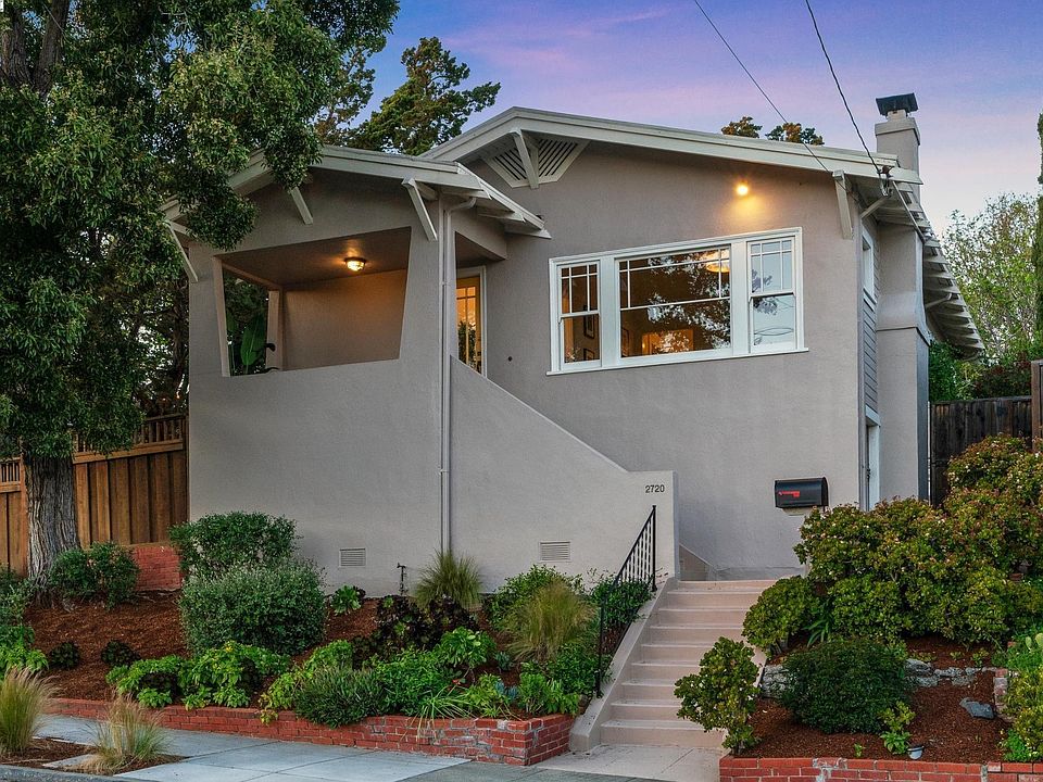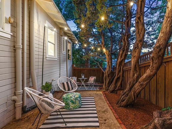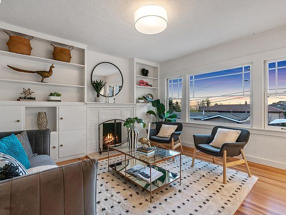 A jewel box in Dimond District awaits in this charming 2+BR/1BA Craftsman bungalow. Surrounded by mature landscaping, ascend the front steps to the welcoming porch of this 1129 SQFT home (including vaulted artist/work studio crafted from the detached garage). Light streams into the living room from a large picture window with an Arts & Crafts design, while the fireplace is flanked with built-in shelving and cabinets. Gorgeous hardwood floors span the home into the kitchen with built-in glass cabinets and separate dining area. A laundry room is off the kitchen as well. The 2 sunny bedrooms have roomy closets and share an updated full bathroom. Out the backdoor, the spacious raised brick patio area is an oasis to entertain your friends or drink a peaceful morning coffee. With a sliding glass door to the patio and multiple windows, the home’s refurbished garage is ready for use as an office, artist’s studio, or potential renovation to an income generating unit? A dedicated parking space is off the shared courtyard and a side yard provides a private, canopied outdoor space for enjoyment. Enjoy the best of Dimond District’s shops, dining, tennis and basketball courts, swimming pool, playgrounds, and trails for running or walking the dog along Sausal Creek. This home truly is a gem!