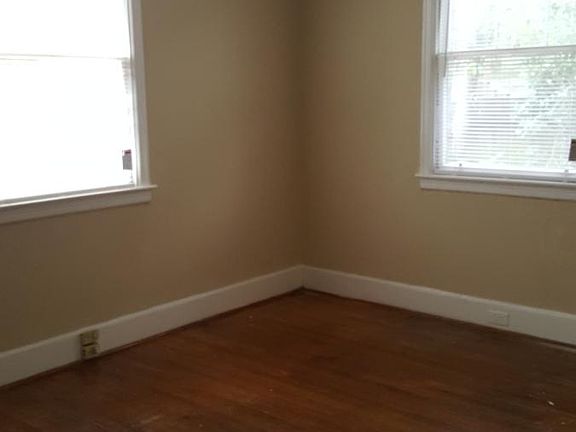 2 bedrooms, 1 bathroom, living room, large eat-in kitchen with stove and refrigerator. Washer and dryer connections, central heat and air, side porch, tenant responsible for all utilities and yard maintenance, off-street parking, pet restrictions.