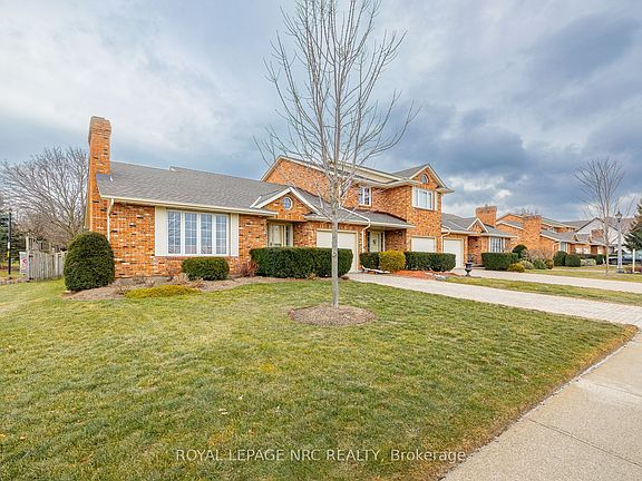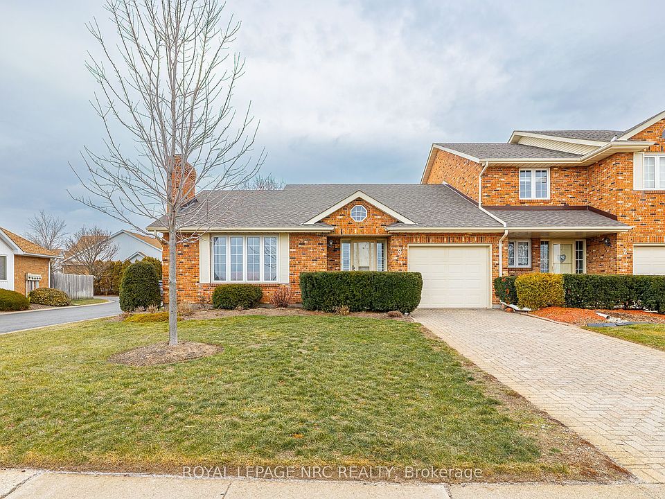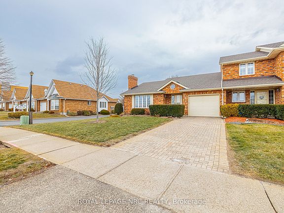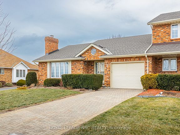 End-unit bungalow townhouse offering 1,355 sq. ft. of well-designed living space with 2 bedrooms and 2 full bathrooms on the main floor, including a primary bedroom with ensuite, plus convenient main-floor laundry. This all-brick home features an attached garage and a custom kitchen with granite countertops and stainless steel appliances. Sliding doors off the kitchen provide easy access to outdoor space. The partially finished basement includes a lower-level office and an additional bedroom or recreation room, offering flexible living options. Recent updates include a newly renovated ensuite and newer furnace and air conditioning. Located in the desirable north end of Niagara Falls, just 1 minute to the QEW and close to shopping and amenities.A must-see home.