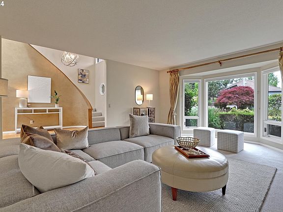 Bauer Woods! Gorgeous, 0.33 acre lot ideally situated on quiet cul-de-sac with primary suite on the main and amazing backyard. Great Room floor plan with hardwood floors, updated kitchen and bathrooms. 3,044 sq. ft. 4 bedrooms, 2.5 bathrooms. Chef's kitchen with oversized island, stainless steel appliances, double ovens, nook with door to deck and views to the backyard. Primary Suite retreat with walk-in closet, updated bathroom with double vanity and walk-in shower and sliding door to the deck. Upstairs features 3 additional bedrooms and updated hall bathroom with double vanity. Newer presidential architectural composition roof, furnace and AC. Oversized 3 car garage. Stunning backyard with southern exposure, spacious deck, lush lawns, and beautiful gardens. Washington County and great schools - Terra Linda, Tumwater, Sunset!