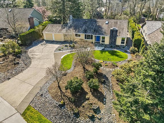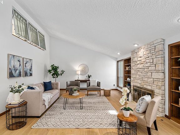 Welcome to Hartung Farms, a serene community and haven for outdoor enthusiasts. This 1977 custom-built home rests on a half-acre in a park-like setting, offering private, picturesque views from every window. The sunken living room boasts vaulted ceilings and a floor-to-ceiling gas fireplace, perfect for unwinding or engaging in lively conversation. Admire the beauty of the Japanese maple from the dining room, while the updated kitchen, with custom cabinets and expansive granite countertops, is ideal for large gatherings and meals. The family room, a few steps down to the lower level, features a classic wet bar and stunning wall-to-wall gas fireplace. To complete this level are two bedrooms, a full bath, and a laundry room which all can be made private with a slide of a pocket door. Retreat to the spacious primary suite on the upper level, which includes a beautifully remodeled bathroom with an abundance of natural light. Down the hall is a half bath, and a bedroom/den with vaulted ceilings, a wall of built-ins and a private deck overlooking the backyard. The backyard is an oasis, with a slightly sloping, expansive lawn and trees, an electric, retractable awning above the patio, a gazebo and gardens, perfect for relaxation or entertainment. Meticulously maintained for over 30 years by one family, this property is in excellent condition and awaits its next loving owners. Enjoy the tranquility and privacy of this home, with its charming seventies' elements, and make it your own. Experience the community, with wooded walks to the elementary school, a private lake for catch & release, tennis and pickle ball courts, swimming pool, and clubhouse. Conveniently located near Nike, Columbia Sportswear, Intel, Hwy 26, and in the heart of the Sunset Corridor, this custom home in Hartung Farms is ready to welcome you home. Please see attached Amenities Doc for more information.