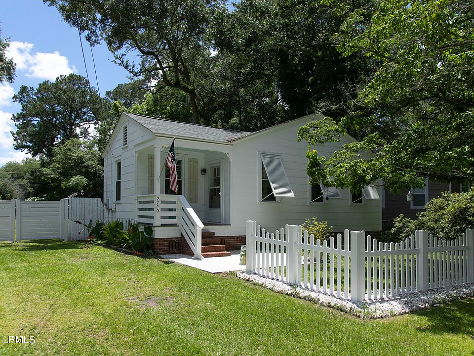 updated electrical panel. Bath includes new tub/shower combo and toilet, along w/ new fixtures. Cute Galley Kitchen upgraded w/ new quartz countertops, sink and all new appliances. Front porch has new Trex decking. Front oyster shell patio & storybook picket fence add to the charm of this cottage. The back yard boast paver patio, a fully fenced yard, new large storage shed painted to match the house. Fresh paint in & out! Full list of upgrades in the documents - tastefully decorated - most furnishings available for purchase. This one won't last long - call today to schedule showing.