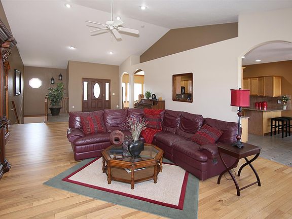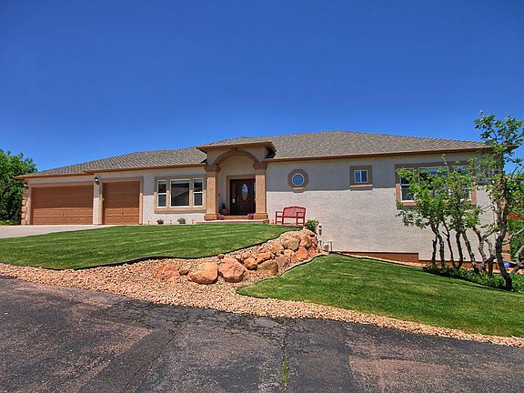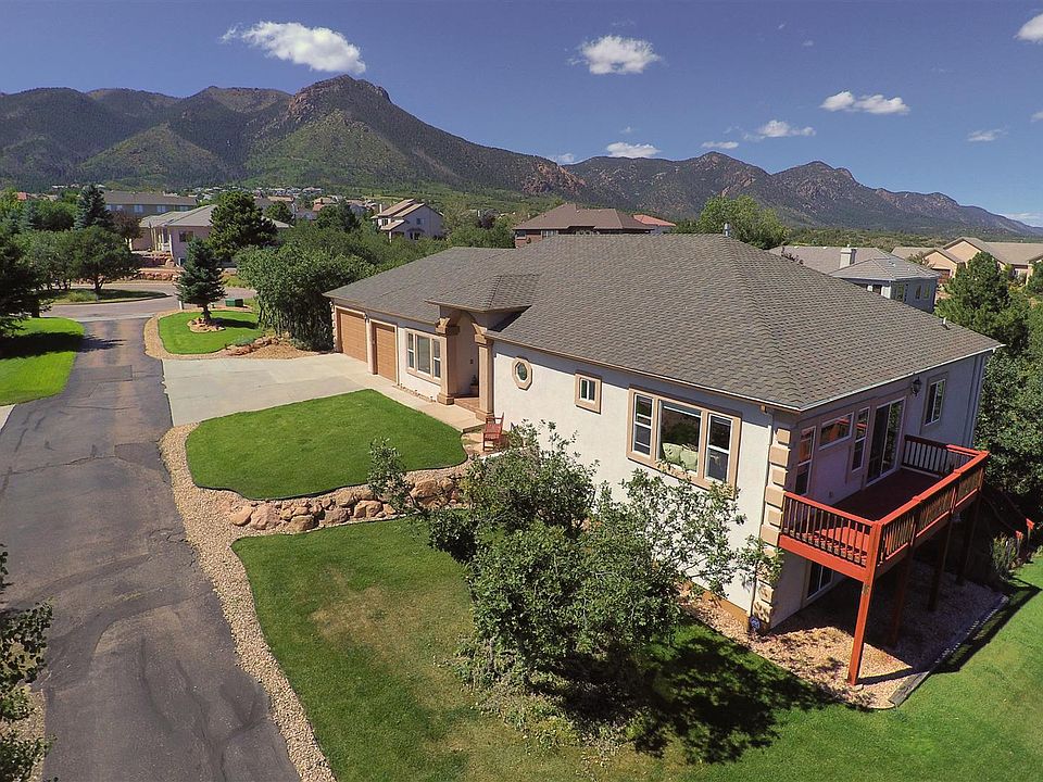 Don't miss this pre-inspected 6 bedroom, 5 bath custom ranch home with 4-car garage and amazing, panoramic views located at end of a quiet cul-de-sac on a serene private drive in the prestigious Peregrine neighborhood featuring 3 bedrooms on the main level! Pride of ownership abounds from the gourmet kitchen with granite countertops and stainless steel appliances to the custom deck with outstanding mountain & city views and the oversized, 1200 sq.ft. garage, this home has it all! The main level features a great room with gas log fireplace, formal dining room, welcoming kitchen with trash compactor, double ovens, sunny nook & large pantry. The main level master retreat offers a walkout to a private deck with city view, spacious walk-in closet & adjoining 5pc bath with separate vanities, ceramic tile & relaxing jetted tub. Two additional bedrooms share a Jack-n-Jill bath with double vanity, plus a main-level powder room for guests. Large laundry room with utility sink, window, closet & access to the garage completes the main level. The finished walk-out basement boasts a full kitchen, large rec room with gas fireplace, 2nd laundry room, a theatre room, a junior master suite plus bedrooms 5 & 6! The yard is an entertainer's delight featuring a large, level grassy area, plus fire pit and basketball court! Other features of this lovely home include: central air conditioning, humidifier & 75 gallon 2-year new hot water heater. Perfect for multigenerational or mother-in-law living! Quiet location close to nearby hiking trails, neighborhood parks and award-winning D-20 Woodmen Roberts Elementary School - this home is a Peregrine stunner!
