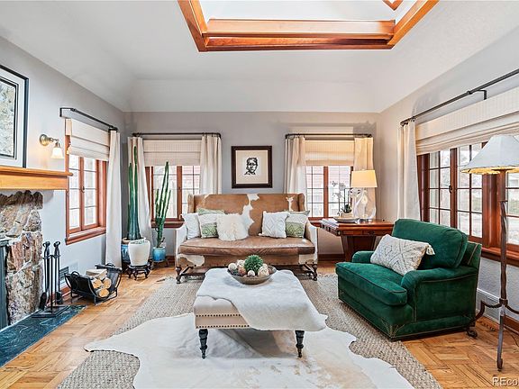 Lustrous living awaits in this charming English-style cottage. Poised on a spacious lot, a welcoming front yard w/ a water feature crafts a tranquil setting. Enter into a gracefully flowing layout awash w/ natural light throughout. Grounded by a wood-burning stone fireplace, a living room showcases two vast skylights and parquet wood flooring. The home chef delights in an updated kitchen w/ a red AGA range, a beverage fridge and soapstone countertops and sink. Enjoy late morning brunch in a sunroom w/ in-floor heating, two skylights and back patio access. Retreat to a main-floor primary bedroom w/ a flex space ideal for an office, gym or seating area. A serene main-floor bath boasts grasscloth wallpaper, subway tile and a barn door. Two upper-level bedrooms are complemented by a shared bath. Downstairs, a finished basement features a rec room w/ a fireplace and built-ins plus a bedroom, full bath and laundry. A private escape awaits in a backyard w/ a wood deck and a flagstone patio.