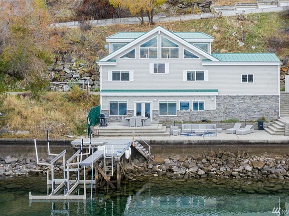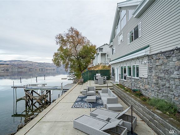 Chelan lakeside lifestyle at it's finest! Enjoy gorgeous panoramic views & leisurely living from the massive patio bordered by 71' of low-bank shoreline-perfect for taking a dip or just dipping your toes! Step inside the well appointed living area designed for relaxation and easy access to the outdoor entertaining. 2 bedrooms plus a full loft offers plenty of room for guests. Paved access, 2 car garage, dock w NEW 8000# boat lift and low maintenance make this home a perfect retreat. No HOA