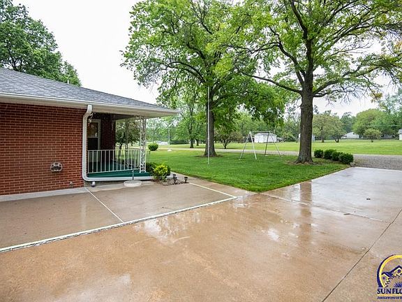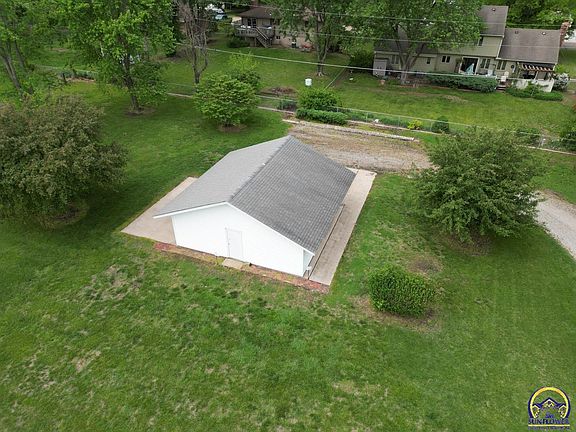 Location, location, location; nearly 5 acres located on the opposite side of the road of Lake Shawnee. Perfect timing for hosting a 4th of July fireworks display gathering; you can see the water from the yard! Runners, walkers, bicyclists, softball-baseball enthusiasts, fisher people, swimming beach fans, ...it's all right there! Set aback from the road for ample privacy with a well manicured lawn & long driveway. All brick rancher with main floor laundry in the Shawnee Heights School district. The large ticket items have been completed and updating for your taste is what is remains. Kitchen boasts custom Birch cabinetry. High efficiency HVAC system (large heat pump) has been consistently, seasonally maintained. Martinek & Flynn wrapped soffits in vinyl to keep the brick rancher's exterior low maintenance along with replacement windows and gutter guards. House attaches to an oversized double car attached garage via breezeway. Cute, red storage shed out back for storage of lawn equipment. Large detached garage (mowers can stay) and a second detached garage (actually has a second layer of siding under the "seen" siding (previously used for boat storage). What a great opportunity to own a lovely home with a premier location! Special opportunities like this one don't happen often.