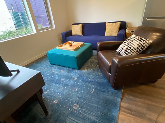 Steele Apartments are just one block from Reed College, 5 minutes to downtown Portland, and a 10-minute walk to Trader Joe's. The apartments are near public bus lines, 24hrs Fitness Center, SE Woodstock, Clinton St., and many coffee shops, restaurants, and shops. The unit is fully furnished and comes with a washer and dryer, garbage disposal, dishwasher, refrigerator/freezer, range, oven, microwave oven, couch, leather lounge chair, ottoman, 50 inch smart TV, queen size bed, side table and bed lamp, book shelf and clothing rack, and fully stocked kitchen with dining and cooking ware. Laminate flooring in the dining area and carpeted flooring in the living room and bedroom. Electric baseboard heating in all rooms and a portable AC unit. Tenant pays for electricity, water, and wifi. Renter's insurance required. This unit is not an accessible dwelling type unit. Please indicate if you have a mobility disability or other disability status in your profile. Tenant pay for electricity. Parking Fee: $100.00 per month. Water Fee: $50.00 per person per month. Wifi Fee: $40 per month. Pet Fee: $40.00 per animal per month. Renter's insurance required. No smoking.