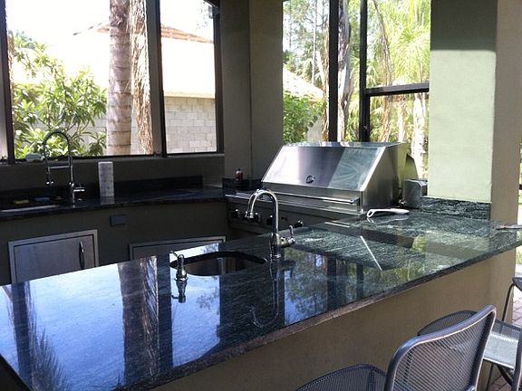 • Exterior features: Stone, Stucco, Cement / Concrete