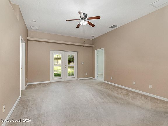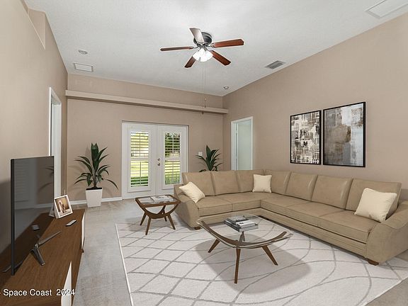 PRICED TO SELL! NEW ROOF coming! Welcome to STRATFORD POINTE. This 3-bedroom, 2-bathroom home is nestled in the heart of West Melbourne. Built in 2004, this sturdy CBS construction offers peace of mind with included HURRICANE SHUTTERS, ensuring you're well-prepared for any storm. The SPLIT FLOORPLAN maximizes privacy and functionality. The home is IMPECCABLY CLEAN and ready for you to move in. One of the standout features is the OVERSIZED SECOND BEDROOM, which is spacious enough to serve as a SECOND PRIMARY SUITE—perfect for guests or a versatile space to meet your needs. The inviting FRENCH DOORS, adorned with elegant PLANTATION SHUTTERS, open to a charming, COVERED PATIO that can easily be screened. There's also plenty of room to add a pool, creating your own private backyard oasis. This meticulously maintained neighborhood features LOW HOA FEES and a welcoming COMMUNITY POOL. The perfect blank canvas, ready for you to personalize and make your own. Don't miss this opportunity beautiful property in the desirable location of West Melbourne's Stratford Pointe.