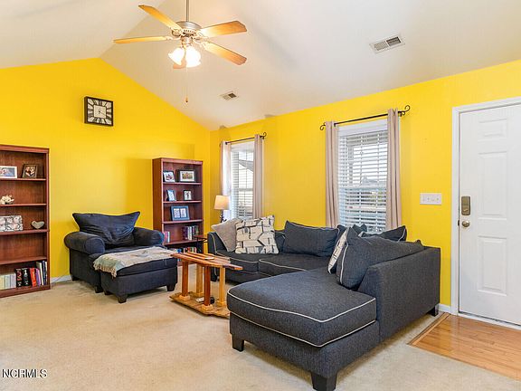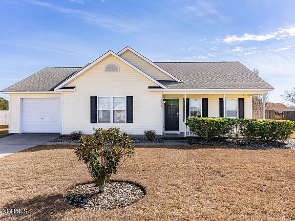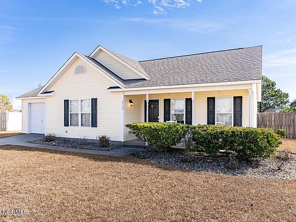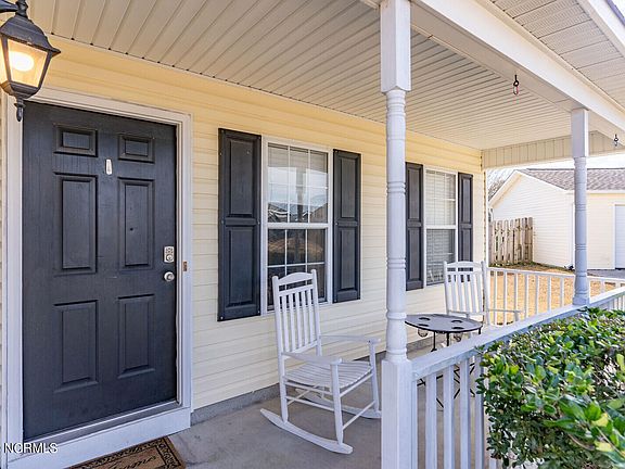 Welcome to Whitney Pines, you will love this suburban community! Guests are greeted by a charming front porch on this well-maintained 3 bedroom, 2 bathroom home. Inside you're welcomed by a light and uplifting main living space with vaulted ceilings. The kitchen offers an island for additional seating, bright white appliances, and a pantry. Perfect for entertaining, the kitchen opens to a dining area with a sliding door to the backyard. This property is on a fully-fenced oversized lot and is equipped with a patio, outdoor fire pit and swing set -- the go-to spot for year-round fun. Whitney Pines is a desirable New Hanover County neighborhood. Just a quick drive to Wrightsville Beach, local parks and schools. The original owners loved and meticulously cared for this home -- ready for new owners to add their own touches. Be prepared for 'love at first sight'. Please note, Hot Tub will convey with an acceptable offer.