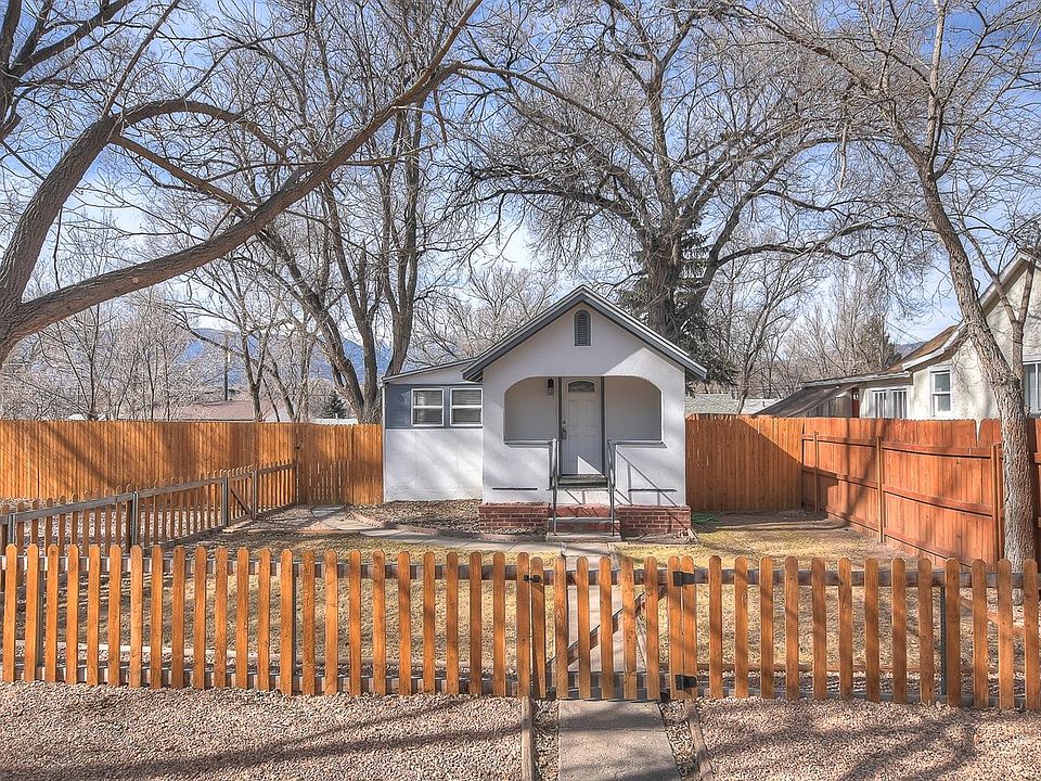 Charming, Charming, Charming!!! Walk in and notice the wonderful character. Get drawn in to the living room with the pretty ship-lap wall and plenty of space for lounging. Ship-lap continues into the open and airy Kitchen. Custom Barn door and shelving compliment the space. Nice size bedroom and attached bath complete the home. Plenty of off street parking also. Huge backyard, Beautiful trees, and Incredible views of pikes peak. Alley Access. Fully fenced with Six foot privacy fence and pickets around the front.