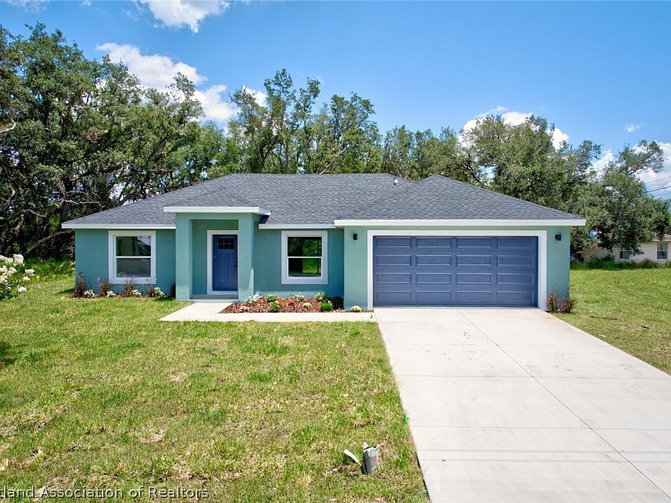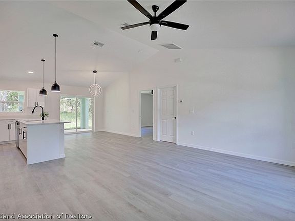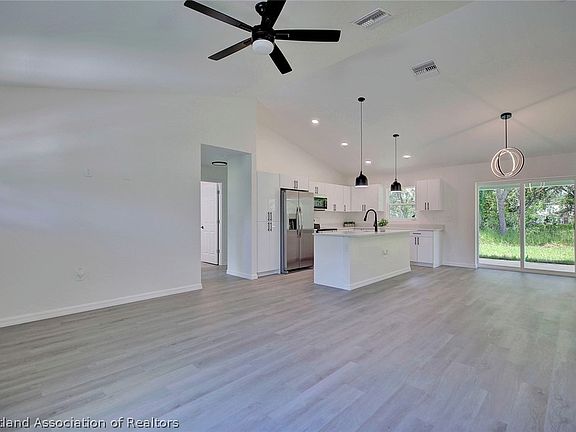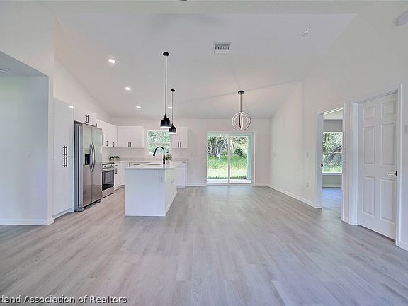 Welcome to your dream home in the highly sought-after neighborhood of Avon Park Lakes! This stunning new build boasts a perfect blend of modern design and functionality, offering 3 bedrooms, 2 bathrooms, and an array of luxurious features. As you step inside, you're greeted by sleek vinyl plank flooring that flows seamlessly throughout the home, creating a stylish and low-maintenance living space. The spacious, open floor plan is highlighted by vaulted ceilings, creating an airy and inviting atmosphere perfect for both relaxation and entertaining. The heart of the home lies in the exquisite kitchen, where culinary dreams come to life. Featuring a central island, contemporary cabinetry, quartz countertops, and stainless steel appliances, this kitchen is a chef's paradise. It effortlessly connects to the dining and living areas, ensuring seamless interaction with family and guests. Retreat to the lavish master suite, complete with an attached master bathroom designed for ultimate comfort and convenience. Pamper yourself in the luxurious walk-in shower, dual vanities, and organize your wardrobe effortlessly in the spacious walk-in closet. Step outside to discover your own private oasis – a perfect covered back patio! With an attached 2-car garage, parking is a breeze, providing ample space for vehicles and storage. The home also has spray foam insulation which will help with energy efficiency! Located in the desirable neighborhood of Avon Park Lakes, this home offers not just a place to live, but a lifestyle. Experience the tranquility of suburban living while still being conveniently close to shops, restaurants, parks, and top-rated schools. Don't miss your chance to make this impeccable home yours – schedule your showing today and prepare to fall in love!