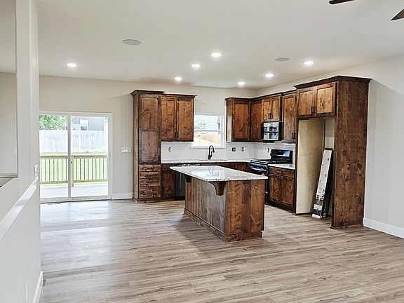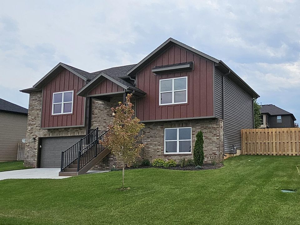 Brand new! Includes privacy-fenced backyard. Built by JK Construction, Inc, ( onsite builder with 30 yrs exp.)Appr 2020 sq ft ! North side of Ozark!! Only a few min to Hwy 65/CC So much room! ! Versatile, open floor plan allows an (optional) 4th BR or a 2nd living area measuring13x15; 3 baths. Backing to the south; enjoy morning coffee from your covered deck ! (same composite decking as the front steps) Equipped with a sound system inside (and on the covered deck) . The master bedroom with tiled,step in shower ,dual vanities and spacious walk-in closet ,complete with wooden shelving and a built-in chest-of-drawers. Also, a 2nd BR, full bath . on the main level. The lower level offers a family room/office . a third Bedroom,measuring 10x15 , a full bath. The garage has (approx) 6 ft additional room for exercise equip, work bench, hobbies etc. (25' deep) The cabinetry is stained and includes a built-in pantry, roll-out drawers in cabinetry and an area for the trash can located in the island..Beautiful granite, stainless steel appliances with gas range , Dishwasher, disposal, and range/microwave are all included. Tile in baths/laundry,. Luxury vinyl plank in living areas,,kitchen, hallways, carpet in bedrooms and closets. Interior color is neutral colors to welcome the natural light to pour in! Buyers to verify school districts. This development includes a pool, (already in and fenced), Landscaping invites you inside, full sod in front /back and irrigation front/back.