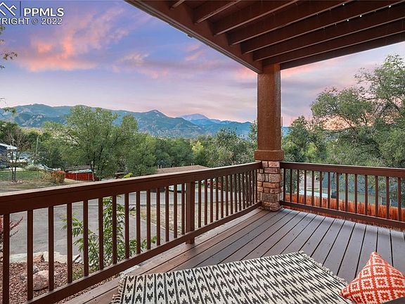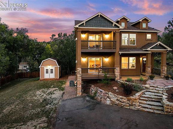 VIEWS! The mountain views from this home are some of the very best in the city! Whether you're on the front porch or upper deck capturing the beauty of Pikes Peak and the front range or you look out the back and see Garden of the Gods, you can't help but be impressed with the stunning views all around. Perfectly situated in the heart of Old Colorado City within walking distance to shops and restaurants, this home is in an ideal location. From the moment you walk in the door, you'll notice the 9 ft ceilings, slate tile entryway, real hardwood flooring, and an open floor plan that is perfect for entertaining. The slate tile gas fireplace with custom mantel accentuates the living room and imagine sitting around the fireplace and enjoying mountain views. From there, it opens up nicely to a gourmet kitchen with double ovens, soft close doors, a gas range, walk-in pantry, granite countertops, oversized sink, and so much more! And the dining area offers plenty of room for seating and a butler station with additional cabinet space for serving and displaying. Upstairs, you'll find a spacious master bedroom with French doors, vaulted ceilings, and a private loft area with an additional fireplace and covered deck. The master bathroom has an oversized shower with custom tile work, double vanity, and a large walk-in closet. There are an additional 2 bedrooms and full bathroom upstairs along with a laundry room for ease and convenience. The basement is just as impressive with another bonus room perfect for a gym or using as a theater. There are another 3 bedrooms and a full bathroom, plus another laundry space in the basement. The home has been newly rebuilt with high efficiency appliances throughout including A/C. Radon system is already in place. There is a bonus finished shed with electricity that was built with an office in mind. This is in addition to a smaller storage shed and a 3 car garage which is a rare find in town! Tesla panels to be installed as an added bonus!