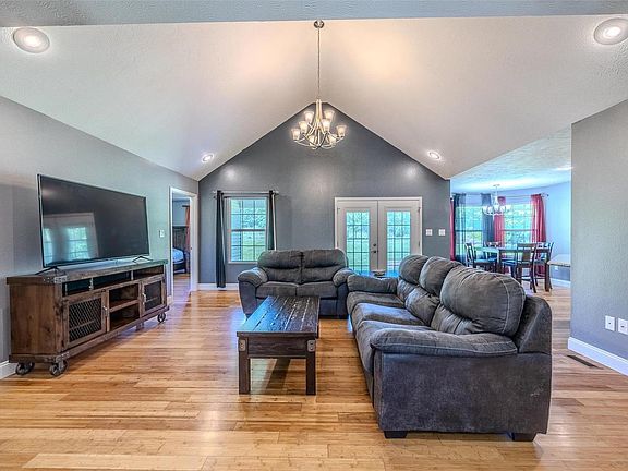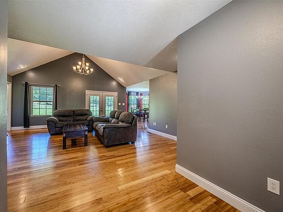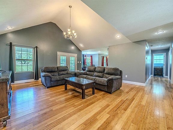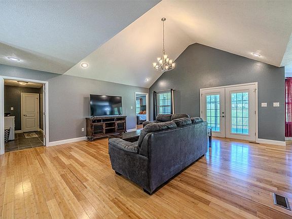Step inside this beautiful, well-cared-for home on 6 acres outside of city limits! 4 bedrooms, 3 bathrooms, brick front & open-concept living. As soon as you walk in, you'll notice the large living room, tall ceilings, & hardwood flooring. The kitchen is an absolute dream! New Stainless steel appliances, a breakfast nook, & all of the countertop space & cabinet storage make it great for hosting dinners. The spacious primary suite has tall tray ceilings, large windows letting in the perfect amount of natural light, a full bathroom with dual sinks, a separate shower & tub, & a walk-in closet. There's also two more bedrooms on the main floor. Moving upstairs, you have 1 bedroom, 1 full bathroom, & an extra living space that would make a great workout room, office, play room, or maybe even a theater room. Items that are new - a/c pump, septic pump, water heater - Freshly painted walls, doors & trim. You have some wooded areas, pasture, fenced in area. New Roof has been installed.