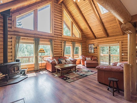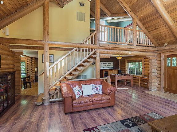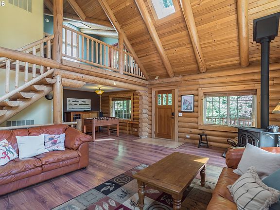 A tremendous opportunity to own a log home on Mt. Hood! Nestled on a private 2.3 acres, this home features a huge kitchen with eat-in nook & granite counter tops, 4 large bedrooms including an impressive master suite, stunning views, vaulted ceilings, open loft area, sport court, paved and gated driveway, detached 3 car garage, wrap around deck, Koi ponds, GREAT NIGHTLY RENTAL $$$. 15 mins to mountain activities, 45 mins to Portland.