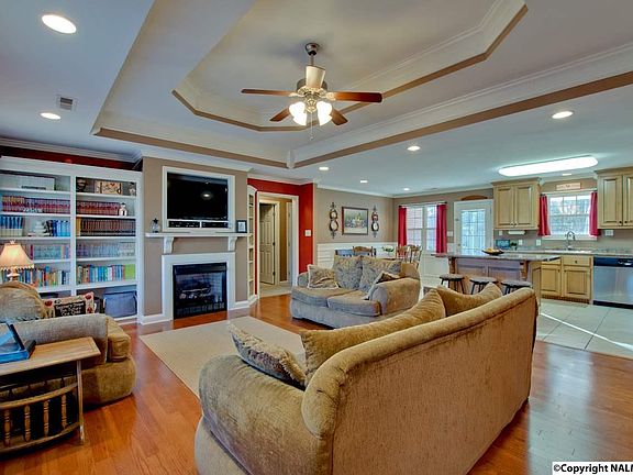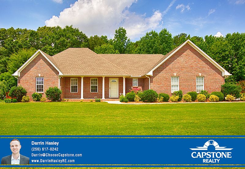 Full brick 3BR home on large, private lot! Open floor plan including Great Room w/ hardwood floors, trey ceiling, and gas fireplace w/ built-ins. Kitchen, that opens to Great Room and Dining Area, has a large island, custom cabinetry w/ glazing, and stainless appliances. Isolated Master Suite has a trey ceiling, built-in study desk, and Master Bath w/ raised double vanity, split walk-in closets, separate shower, and jetted tub. Outdoor features include: covered patio, side-entry garage, and private backyard. Call Darrin Hasley (256) 617-0242 for additional information.