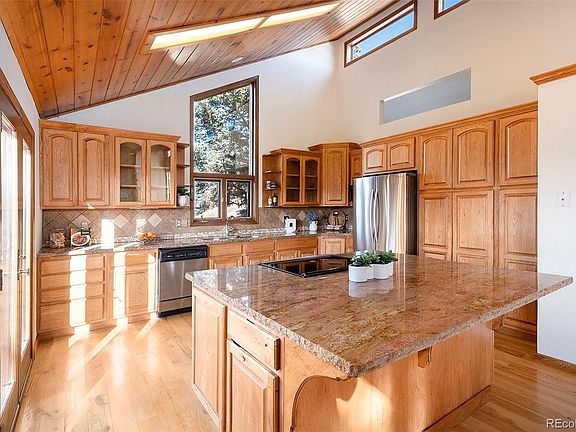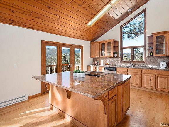 Don't miss this fantastic house in a sought after Conifer neighborhood with incredible views of Mt. Blue Sky and lots of natural light! Amazing location- minutes to Flying J Ranch/Meyer Ranch Open Space/Staunton State Park for hiking, super close to schools and shopping, less than an hour to DIA, 1.5 hours to Breckenridge, less than 30 min to shopping on Wadsworth. This house has great "bones" and was meticulously maintained by the original owners. Some special features to notice~ remodeled kitchen(10 years +) with slab granite, high quality cabinets with pull out shelves and soft close drawers, refinished hickory wood floor, and a brand new induction stove with convection oven, high efficiency gas stoves for heating on both levels (Quadrafire and Jotul), new garage doors with Bluetooth controls, new hot water heater, deck and stairs replaced in 2014, and the Handy person's dream workshop with extra storage. Soak up the sun and incredible views from the private deck just off the kitchen. The soaring vaulted tongue and groove ceilings and open floor plan allows for future updates and timeless possibilities. This house is move-in ready with so much possibility for equity growth!