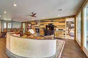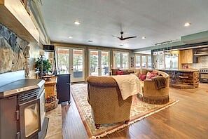 PROFIT, PROFIT, PROFIT! This stunning lake property is currently being used as a vacation home on EVOLVE with multiple 5-star reviews, averaging $75,000 mol/year for the last three years. You do not want to miss out on this luxurious home on Grand Lake O' the Cherokees! This rustic 4-bedroom, 4.5-bathroom home invites you to unwind on its 1.2acres mol of waterfront yard space. The spacious and open living/dining/kitchen has tons of room for gatherings. All 4 bedrooms have their own bath on-suite. This gorgeous property includes a three-car attached garage, pool table, hot tub, fire pit, jet ski dock/shared boat dock and a 50 AMP for RV hook-up. Fully Furnished! No restrictions or HOA fees! This property is currently being used as a vacation rental property on Evolve. Beautiful Lake House w/ Hot Tub Shared Dock! - Afton, OK | Evolve (Financials available upon request). ALL furnishings stay with the property except the deer heads. *Seller is an active Real Estate Agent.