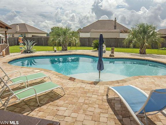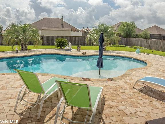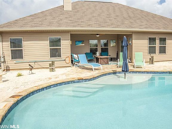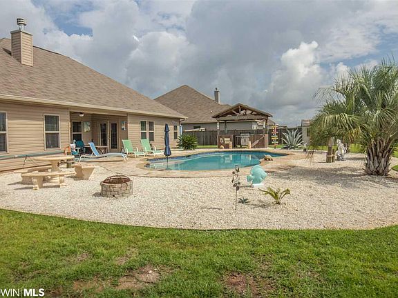 This home is better than show homes. The back yard is like a Caribbean Resort. With a 22' x 35' x 6' deep Salt Water, Gunite Pool. Pavers come from the back door under the covered back porch, surround the pool and flow into the Teke Hut. Numerous mature palms are scattered around the pool area. A stone fire pit outside next to a concrete picnic table is a cozy winter spot as is the gas fire pit beneath the covered back porch. A gas grill beneath the Teke Hut completes the outdoor entertainment area. You will immediately feel like you are on vacation and won't want to go inside. But the inside is also perfect. The sellers built the home from the ground up and chose all the best finishes; hardwood floors, all granite counter tops , ceramic tile floors, best carpet, backsplash and cabinet pulls. This is a classy home from front to back. The owners have kept it that way from day one. The icing on the cake is that you have a Gold Fortified Home built beyond normal building codes which include hurricane shutters on all windows and doors which give you a more sturdy and safer home while reducing your insurance premiums. It is located in a country setting yet is close to Eastern Shore Center, I-10 and the Foley Beach Expressway. Two ponds with fish, basket ball court, tennis courts, a picnic area and a gazebo embellish the central common area.