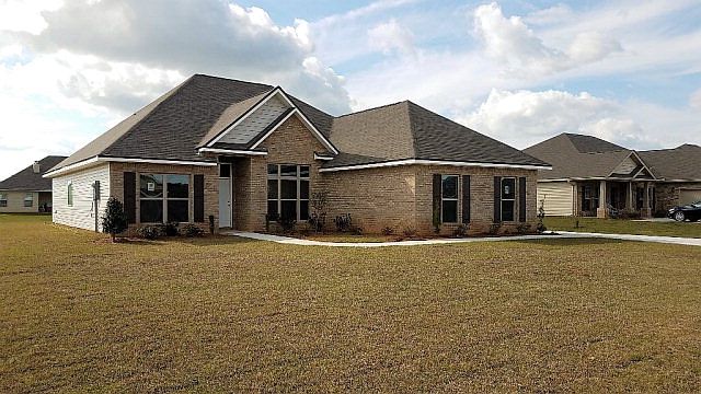 The Davenport/D. Great family home with plenty of room for separate living or family gathering. This split bedroom plan has a large kitchen with a stand alone island and a long breakfast bar overlooking the family room and covered back porch. The corner, wood burning Fireplace adds warmth the to living room and open kitchen/breakfast area. All Granite counter tops and Stainless Steel Appliances. Recessed can lights in kitchen, living room and above all showers. Master bath has separate shower and garden tub. Master suite and family rooms have tray ceilings with crown molding. Home is on a .44 acre home site in a country sitting only 2 miles from I-10 and about 5 miles from Hwy. 181. Community has tennis, basketball, gazebo, common areas and ponds for picnics and fishing.