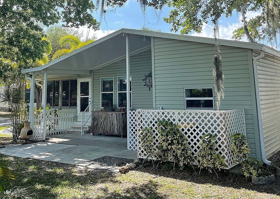 Remodeled 3 bedroom, 2 full bath home located in the 55+ community of Riverside Oaks. This unit has cathedral ceilings thru-out, an all season lanai, master en-suite that was recently completely remodeled and a 2 car carport. The third bedroom can be used as an office with built in desk and cabinets. Yard maintained by association, trash and yard waste collection included in the $650 HOA fee. Active community center with heated, caged pool, grills, shuffleboard and horseshoe pits. *NO Realtors or solicitations