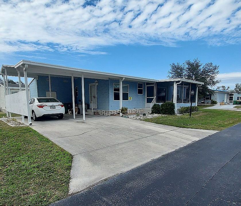 Partially furnished home on corner lot. the carport is wide enough for 2 cars to park side/side. Located in the community of Riverside Oaks. This is a non-resident owned 55+ community of 102 homes. A/C is new in 2022 & New roof 2023. With a Clubhouse, swimming pool and more, this is the start to living the Florida Lifestyle!