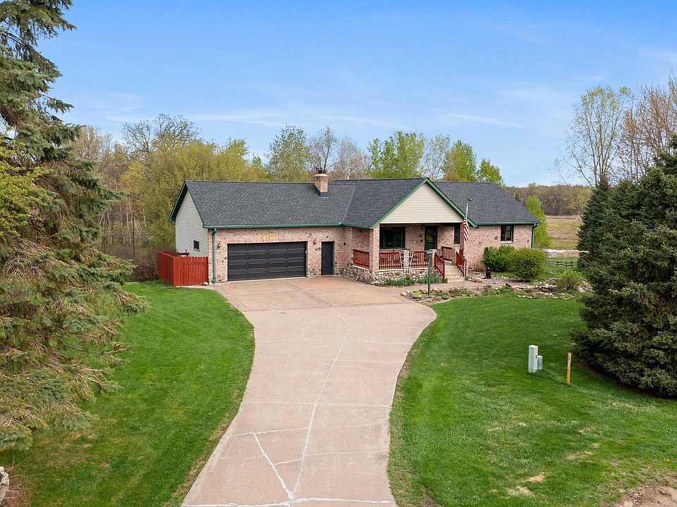 Welcome to 27209 Isle Court, an idyllic retreat nestled on a beautiful 3-acre lot. As you approach this picturesque property, you'll be captivated by its peaceful setting, with only 4 homes located on this quiet cul-de-sac. The eye-catching stamped concrete driveway leads you to an oversized 2-car garage, while the beautiful landscaping invites you to explore further.